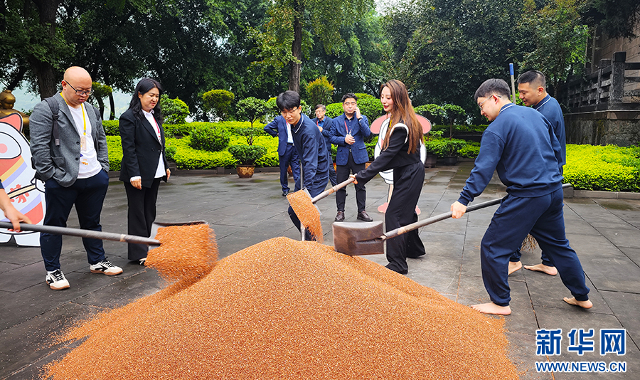 10月11日,參加茅臺酒節(jié)的嘉賓在茅臺中國酒文化城體驗“下沙”工藝。新華網(wǎng) 盧志佳 攝