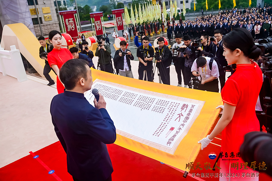 10月11日,茅臺人恭讀《甲辰年 2024年茅臺酒節(jié)敬文》。