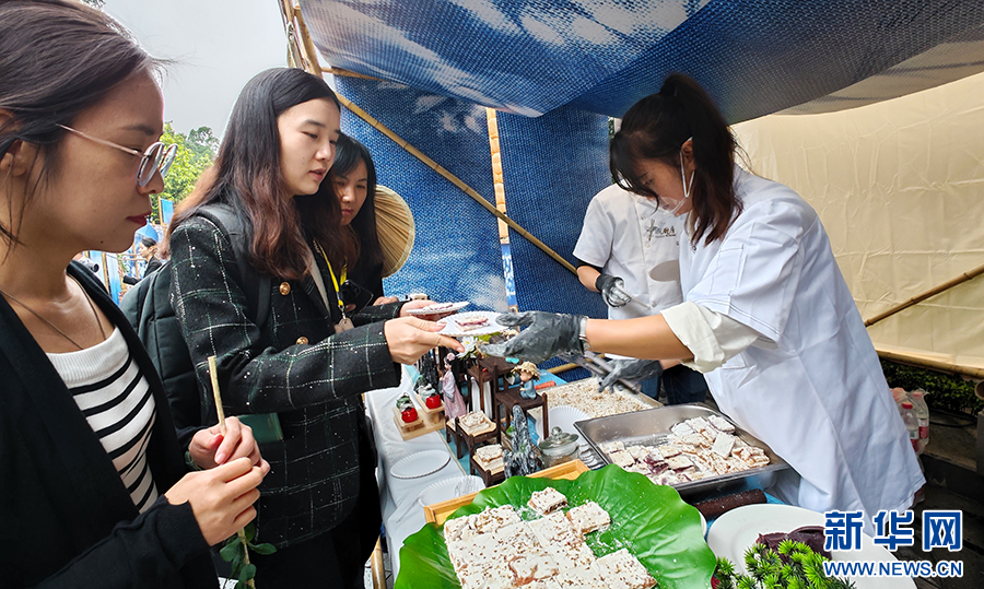10月11日,嘉賓在茅臺酒節(jié)非遺市集品嘗美食。新華網(wǎng) 盧志佳 攝