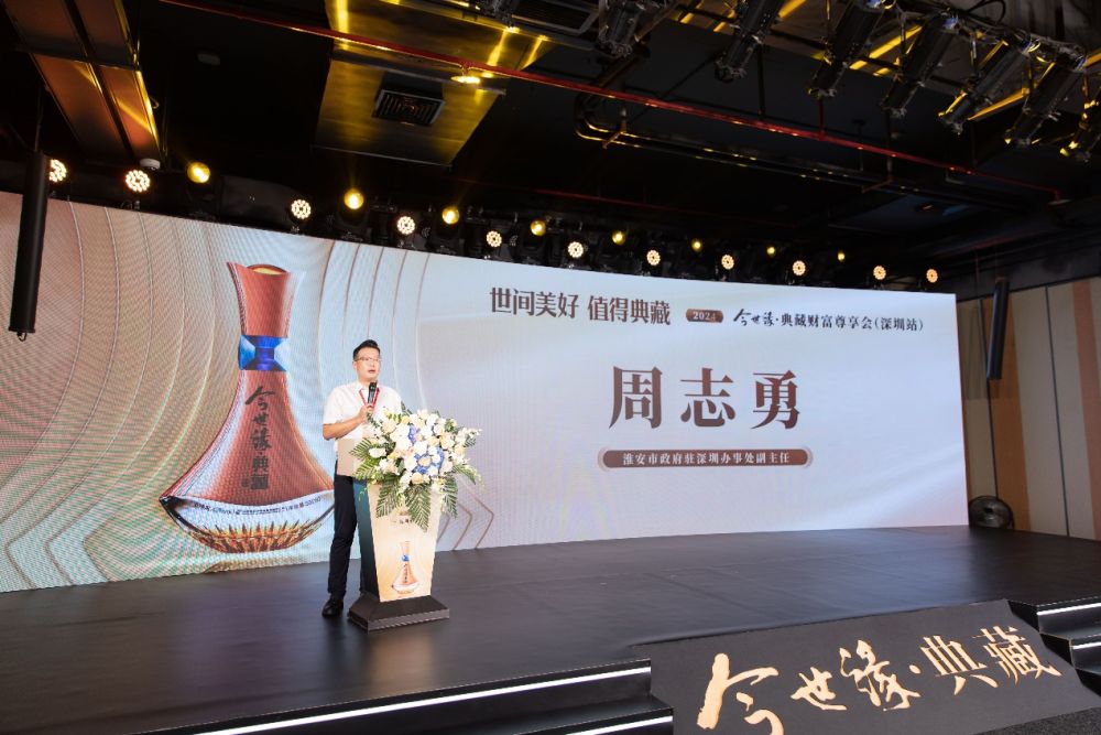 淮安市政府駐深圳辦事處副主任周志勇發(fā)表致辭。他說,江蘇淮安文化底蘊(yùn)深厚,而今世緣酒業(yè)作為淮安的杰出代表,此次在深圳舉辦今世緣·典藏財(cái)富尊享會(huì)(深圳站),不僅體現(xiàn)了對(duì)深圳市場(chǎng)的重視,也彰顯了淮安與深圳之間日益密切的交流與合作。