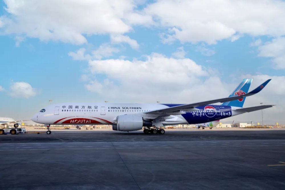 ——“中國茅臺(tái)號(hào)”彩繪飛機(jī),是中國茅臺(tái)和南航集團(tuán)深度合作的創(chuàng)新成果。南航作為中國航空業(yè)的佼佼者,近年來持續(xù)推進(jìn)發(fā)展方式創(chuàng)新,為旅客提供更加智能、精準(zhǔn)、便捷的全流程服務(wù)體驗(yàn),也不斷助力茅臺(tái)等更多民族品牌與世界互聯(lián)互通。茅臺(tái)與南航的深度合作,雙方共同創(chuàng)新啟航的“貴州茅臺(tái)號(hào)”,已成為一張靚麗的“空中名片”。此次將“貴州茅臺(tái)號(hào)”創(chuàng)新升級(jí)為“中國茅臺(tái)號(hào)”,成為南航首架A350商業(yè)彩繪飛機(jī),持續(xù)彰顯“中國茅臺(tái)·香飄世界”的品牌張力,讓“飛天”寓意更加美好。