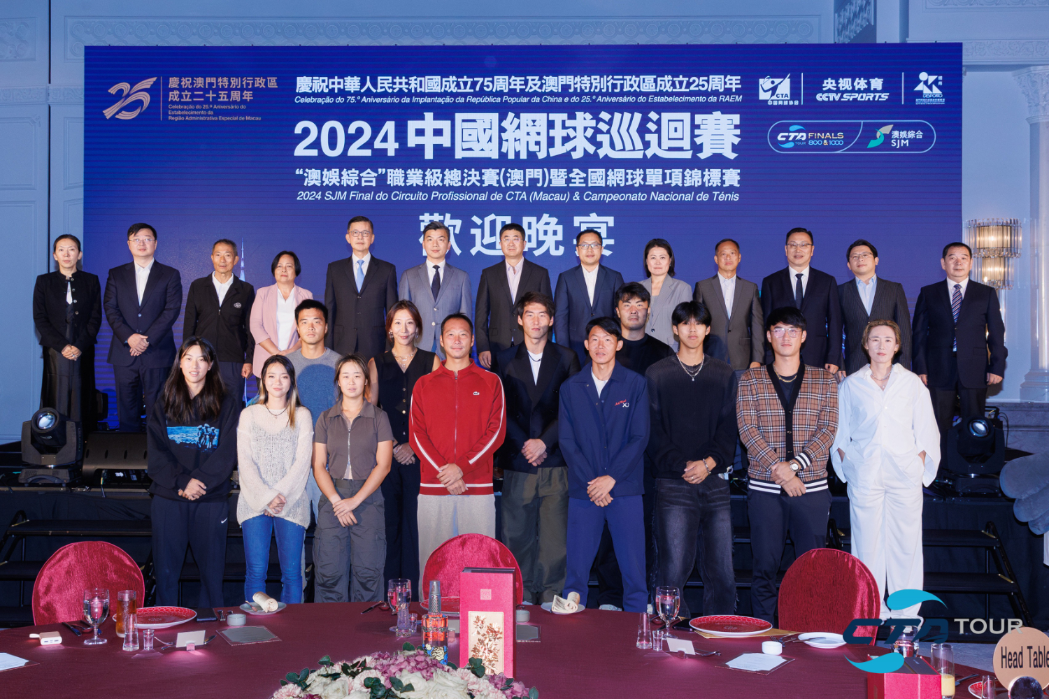 首日比賽結(jié)束后,中國網(wǎng)球巡回賽“澳娛綜合”職業(yè)級總決賽暨全國網(wǎng)球單項錦標賽舉行了歡迎晚宴,冠軍獎杯和吉祥物共同亮相,吸引眾多與會嘉賓和球員合影留念。國窖1573為本次賽事特別定制了“澳然揮拍”“Panda 1573”“逍遙之飲”三款中式調(diào)酒,獨特的造型和濃香馥郁、層次豐富的口感為晚宴增添了別樣風味。