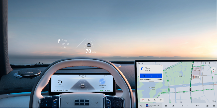 車端主流高頻應(yīng)用全配齊,F(xiàn)lymeDesgin設(shè)計(jì)風(fēng)格超自然,壁紙桌面隨心換,更有音樂小窗模式,SmartBar快速切換后臺應(yīng)用,操作像手機(jī)一樣好用。搭配14.6英寸窄邊中控屏+10.2英寸全液晶儀表盤+13.8英寸超清W-HUD抬頭顯示,帶來超享受的三屏聯(lián)動。其中,抬頭顯示更擁有高達(dá)12000nits亮度,媲美豪華高端車型,即使是在直射陽光下依然能夠提供清晰可見。