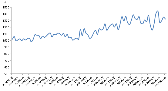 新華財經(jīng)北京12月11日電(陸子琛、馬兵)11月份,新華·中鹽食用鹽(商超)價格指數(shù)報1323.81點,較上期(2024年10月)下跌28.93點,跌幅2.14%;較基期(2018年1月)上漲323.81點,漲幅32.38%;較周期內最高點1445.75點(2024年7月)下跌121.94點,跌幅8.64%;較周期內最低點981.91點(2018年12月)上漲341.90點,漲幅34.82%。