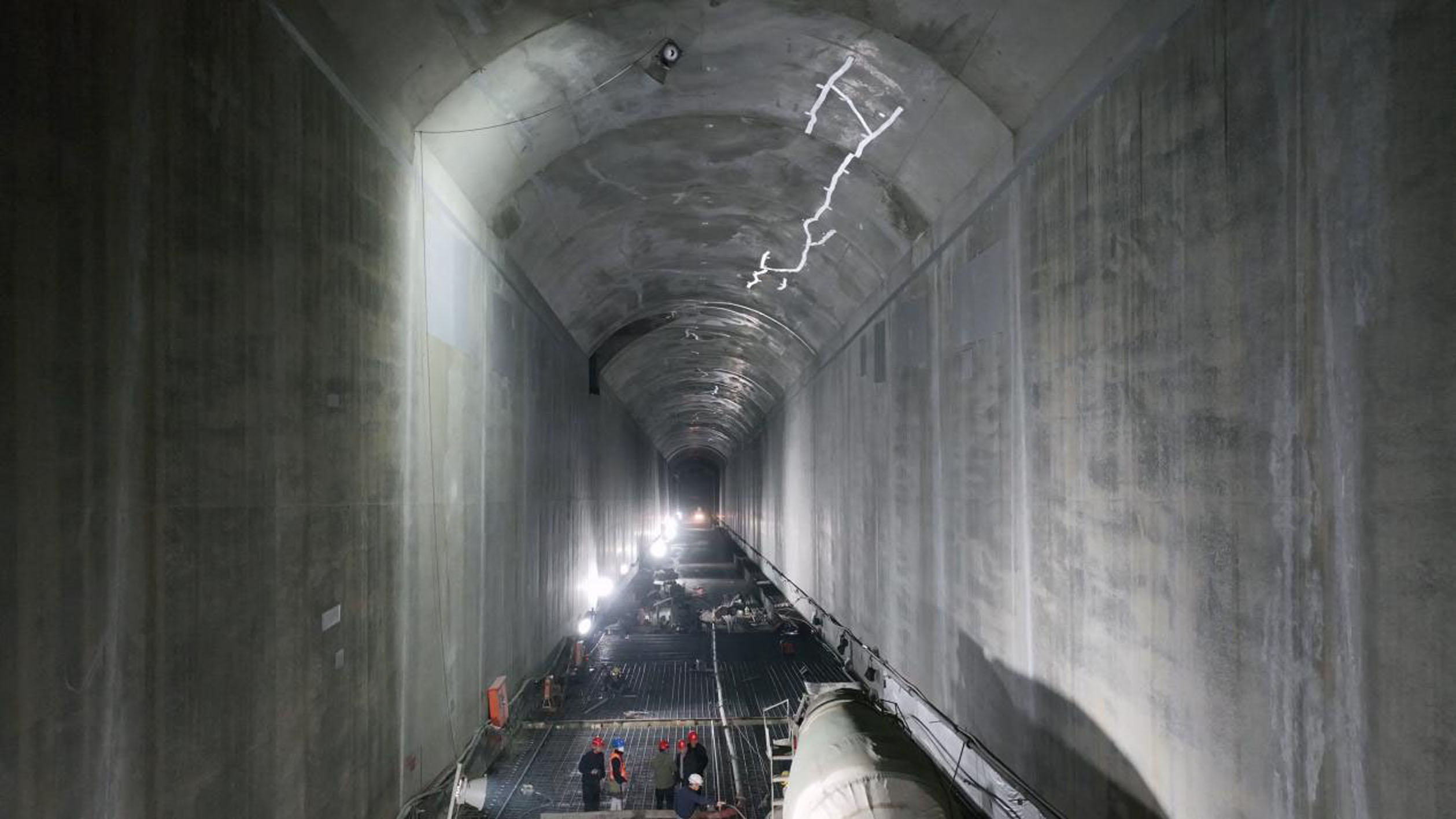 從廠房出來,記者來到3號(hào)導(dǎo)流洞進(jìn)口閘室及豎井泄洪洞下平段施工現(xiàn)場(chǎng),剛完成襯砌的洞室內(nèi)混凝土清晰得甚至可以照出人影。