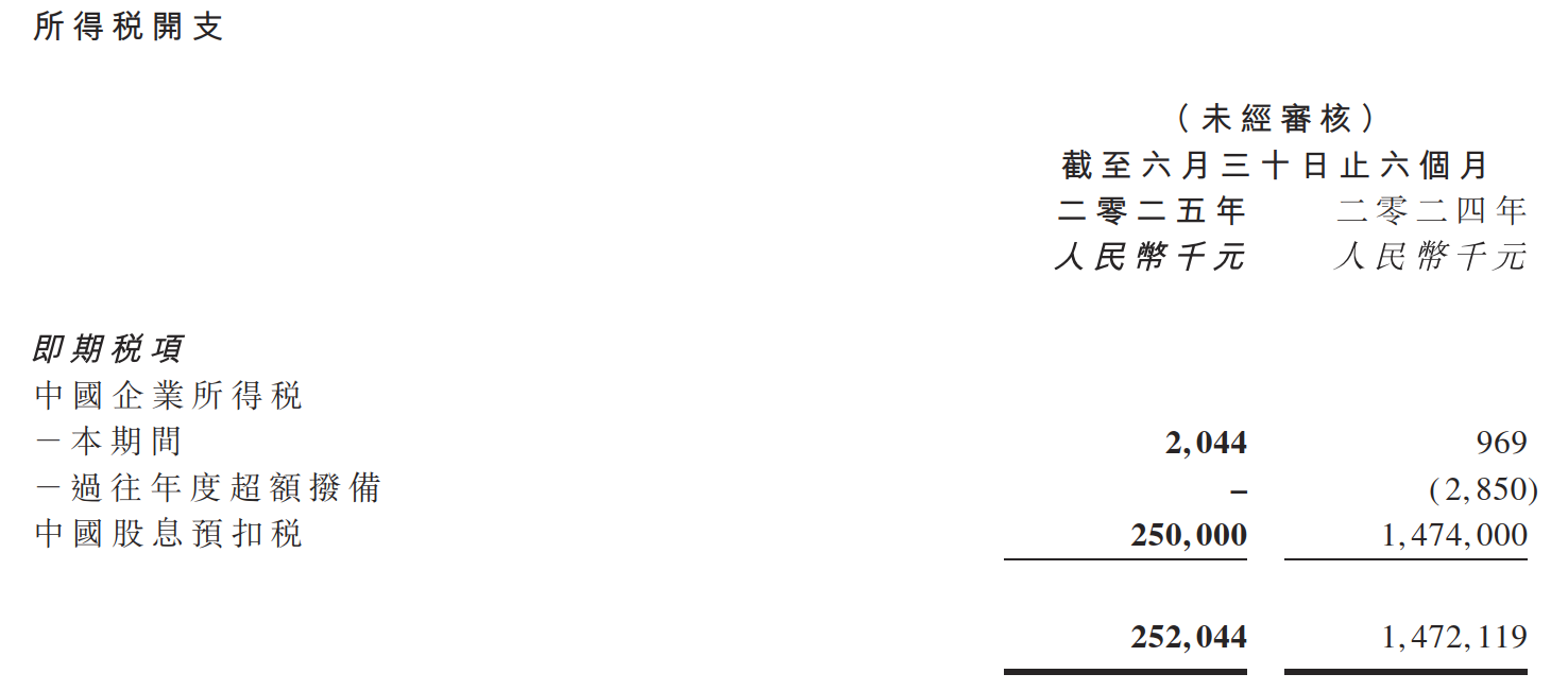 整體來看,盡管華晨中國今年上半年實現(xiàn)凈利增長,但核心因素卻是稅收開支同比減少所致。報告期內(nèi),公司所得稅開支為2.52億元,去年同期則為14.72億元,由此本期同比減少82.88%。減少的原因是華晨中國附屬公司2024年上半年支付了大額的股息預(yù)扣稅14.74億元,而今年上半年的股息預(yù)扣稅大幅降至2.50億元。