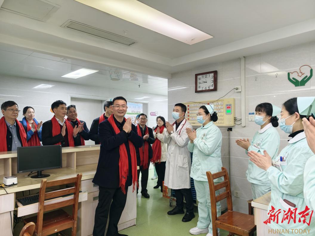 2月17日,大年初一,婁底市中心醫(yī)院、廣州醫(yī)科大學(xué)附屬第一醫(yī)院婁底醫(yī)院黨委書記王澍率在家院領(lǐng)導(dǎo)及部分職能科室負(fù)責(zé)人,深入臨床一線,親切慰問春節(jié)期間堅(jiān)守崗位的醫(yī)護(hù)人員,并走訪探望住院患者,為他們送去濃濃的新春祝福和暖心的節(jié)日問候。