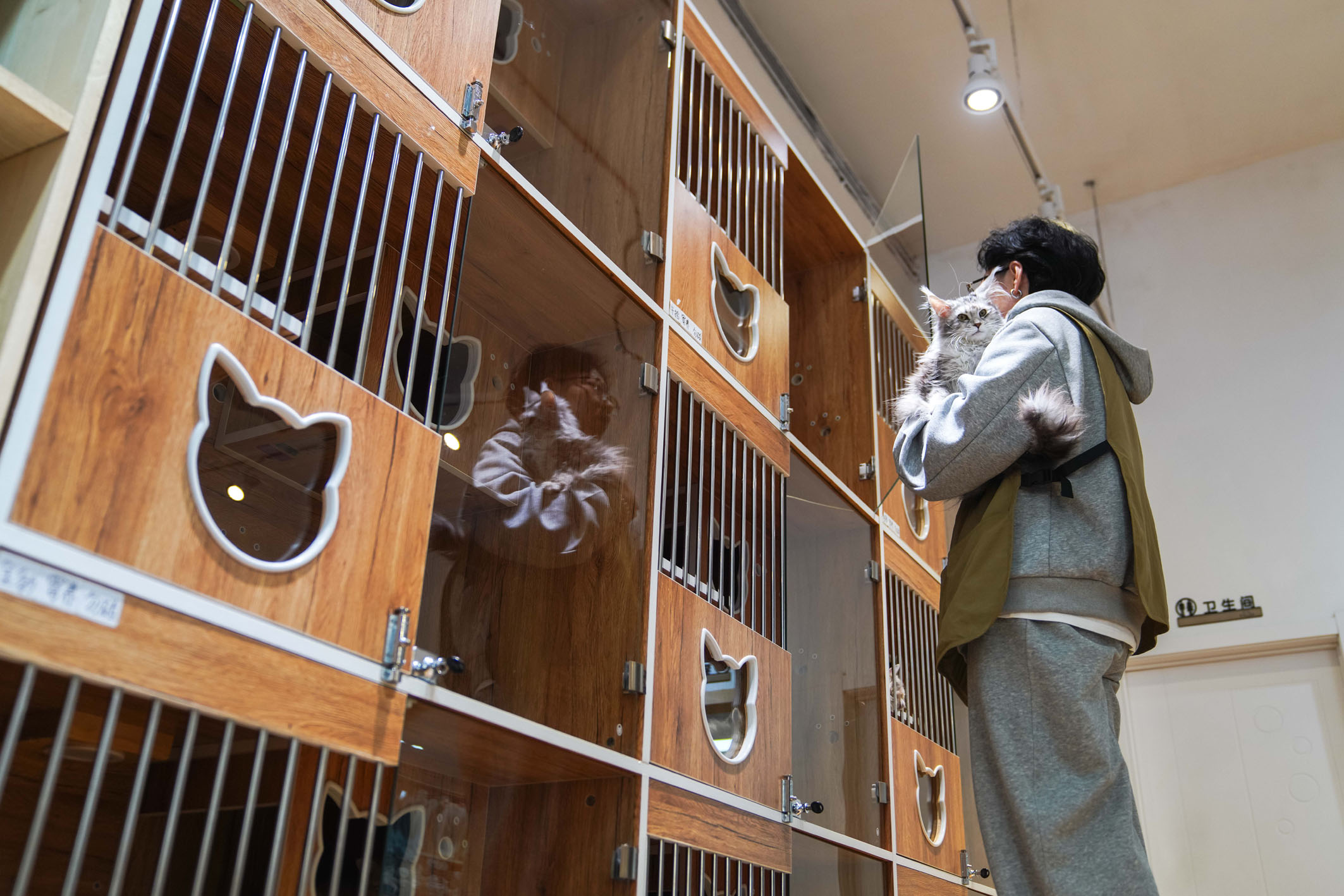 圖為吉林省長春市一家寵物店內(nèi)的飼養(yǎng)員從柜子中抱出一只將在店內(nèi)寄養(yǎng)過春節(jié)的寵物貓。新華社記者 許暢 攝