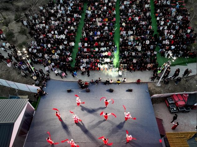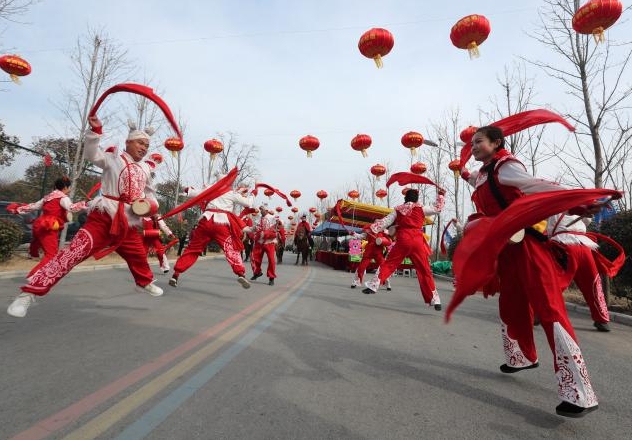 2026年2月19日,安徽省亳州市蒙城縣雙鎖山景區(qū),民間藝人在表演安塞腰鼓。(胡衛(wèi)國(guó) 攝)