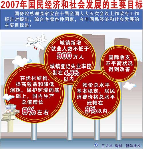 “物價(jià)總水平基本穩(wěn)定,居民消費(fèi)價(jià)格總水平漲幅在3%以內(nèi)!苯衲暾ぷ鲌(bào)告對(duì)物價(jià)調(diào)控目標(biāo)作了這樣的安排,3%的預(yù)定目標(biāo)與上年的年度目標(biāo)相同。 當(dāng)前的經(jīng)濟(jì)形勢(shì)是“高增長(zhǎng)、低通脹”,以2006年為例,經(jīng)濟(jì)增長(zhǎng)率為10.7%,而居民消費(fèi)價(jià)格漲幅僅為1.5%,物價(jià)總體溫和。 不過(guò),中國(guó)工商銀行安徽分行行長(zhǎng)、全國(guó)人大代表趙鵬指出,政府工作報(bào)告在介紹完經(jīng)濟(jì)增長(zhǎng)連續(xù)四年達(dá)到或略高于10%之后,接下來(lái)就說(shuō)“沒有出現(xiàn)明顯通貨膨脹”,說(shuō)明在經(jīng)濟(jì)高增長(zhǎng)的背景下,政府對(duì)通貨膨脹問題高度關(guān)注。 西南財(cái)經(jīng)大學(xué)教授、全國(guó)人大代表秦池江認(rèn)為,2006年居民消費(fèi)價(jià)格總水平上漲1.5%雖然不高,但這并不意味著當(dāng)前通貨膨脹壓力很小,必須有所防范。今年設(shè)定物價(jià)3%的目標(biāo),其面臨的形勢(shì)也是這樣。 當(dāng)前,銀行體系流動(dòng)性過(guò)剩給整個(gè)物價(jià)形勢(shì)帶來(lái)不小壓力。北京大學(xué)國(guó)民經(jīng)濟(jì)核算研究中心蔡志洲研究員表示,由于國(guó)際收支不平衡造成央行不斷放出基礎(chǔ)貨幣,貨幣供給增加的壓力正在加大。貨幣供給超過(guò)實(shí)際需求,就容易造成通貨膨脹壓力。 而資源性產(chǎn)品價(jià)格改革,也將增加物價(jià)上行壓力。記者從有關(guān)部門了解到,為更好地采用經(jīng)濟(jì)手段促進(jìn)節(jié)能降耗,為使資源價(jià)格更好地反映資源稀缺度,資源性產(chǎn)品價(jià)格將總體上行,會(huì)帶動(dòng)居民消費(fèi)價(jià)格一定程度的上漲。 此外,去年底部分地區(qū)糧食價(jià)格的上漲,對(duì)今年居民消費(fèi)價(jià)格的影響也將逐漸釋放和表現(xiàn)出來(lái)。部分公共產(chǎn)品和服務(wù)價(jià)格的調(diào)整也會(huì)帶動(dòng)居民消費(fèi)價(jià)格上行。 綜合上述原因,央行等部門也認(rèn)為,當(dāng)前物價(jià)上行風(fēng)險(xiǎn)要大于下行風(fēng)險(xiǎn)。雖有壓力,但今后并不會(huì)出現(xiàn)明顯的通脹。 記者從有關(guān)部門了解到,當(dāng)前社會(huì)供求關(guān)系總體平衡,供略大于求,這總體上制約了明顯通貨膨脹的出現(xiàn)。更重要的是,經(jīng)過(guò)了這么多年的宏觀調(diào)控實(shí)踐,政府對(duì)市場(chǎng)規(guī)律的認(rèn)識(shí)不斷深化,調(diào)控藝術(shù)和手段不斷完善,完全有能力應(yīng)對(duì)通貨膨脹的壓力。 “3%是物價(jià)溫和上漲的上限。”蔡志洲研究員指出,這個(gè)指標(biāo)是切合實(shí)際、留有余地的,政府通過(guò)回收流動(dòng)性、穩(wěn)定糧食價(jià)格、把握資源性產(chǎn)品和公共服務(wù)價(jià)格調(diào)整節(jié)奏等方式,完全能夠?qū)崿F(xiàn)這個(gè)物價(jià)調(diào)控目標(biāo)。