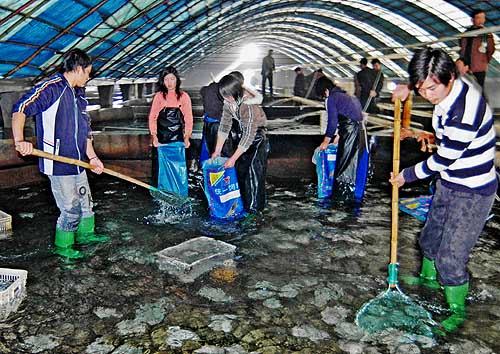 重大食品安全事件幾乎都是媒體曝光在先,相關(guān)部門查處在后。“就是因?yàn)槭称钒踩O(jiān)管制度有硬傷,才導(dǎo)致七八頂‘大蓋帽’也管不了問(wèn)題食品的現(xiàn)狀!标惾f(wàn)志委員一語(yǔ)道破食品安全事故頻發(fā)的根本原因。針對(duì)目前食品監(jiān)管存在的問(wèn)題,“從制度上入手”成為代表委員們的共識(shí)。 圖為山東省日照市一家養(yǎng)殖企業(yè)的員工在養(yǎng)殖大棚內(nèi)捕撈藥殘超標(biāo)的多寶魚(yú),準(zhǔn)備銷毀(資料照片)。