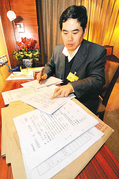 3月1日,全國(guó)政協(xié)委員湯建人在駐地修改提案,他準(zhǔn)備了22個(gè)提案。新華社記者
