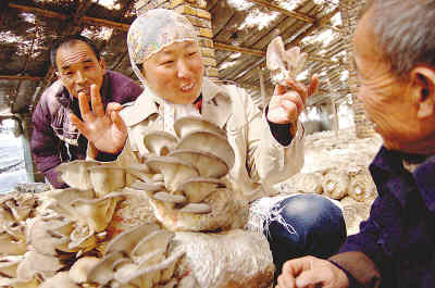 2月27日,全國(guó)人大代表魯中祝(中)深入農(nóng)戶(hù)家中,了解蘑菇種植戶(hù)需求和生產(chǎn)生活中的困難。陳彬 攝 |