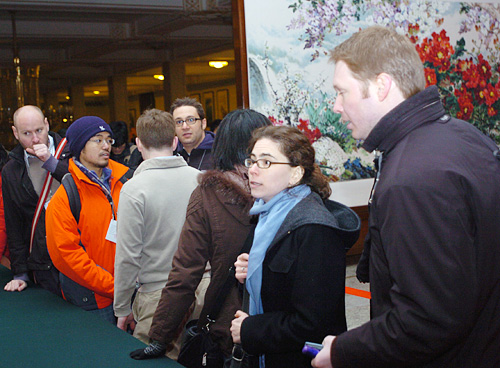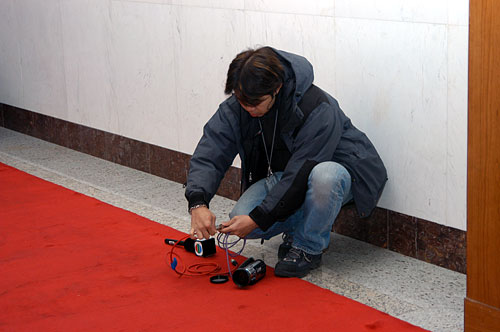 3月5日上午9時,第十一屆全國人民代表大會第一次會議在人民大會堂開幕,聽取國務(wù)院總理溫家寶作政府工作報告,審查年度計劃報告和預(yù)算報告。圖為外國記者在報到。新華網(wǎng) 陳競超 攝