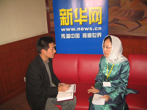 3月5日下午3時,第十一屆全國人民代表大會第一次會議寧夏回族自治區(qū)代表團全體會議在中苑賓館舉行。全國人大代表、寧夏回族自治區(qū)人口與計劃生育委員會主任、寧夏社科聯(lián)副主席吳海鷹(右)接受新華網(wǎng)記者采訪。新華網(wǎng)
