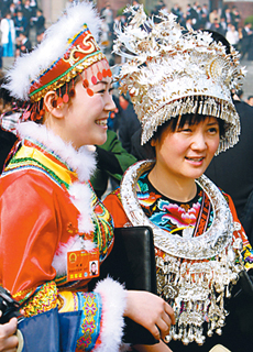 兩會開幕以來,無論是在人民大會堂還是在代表委員們討論的會議室里,處處可見身著民族特色服裝的少數(shù)民族的代表和委員們。他們自信的表情及其發(fā)自內(nèi)心的喜悅,處處展示著在中華民族大家庭里各族人民共同發(fā)展和進步的和諧氣氛。這是3月10日上午記者從人民大會堂的會議現(xiàn)場抓拍的一組鏡頭。