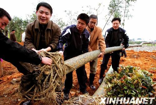 [影像鏈接] 這是福州市倉(cāng)山區(qū)干部群眾在道路兩側(cè)種植景觀樹(shù)(2007年3月18日攝)。新華社發(fā)