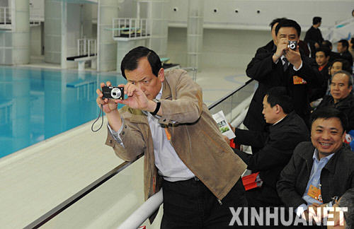 3月12日,出席全國政協(xié)十一屆一次會(huì)議的部分全國政協(xié)委員參觀北京奧運(yùn)場(chǎng)館。這是委員們?cè)趪矣斡攫^內(nèi)參觀。