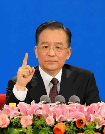 | 國(guó)務(wù)院總理溫家寶回答記者提問(wèn)。 新華社記者 蘭紅光