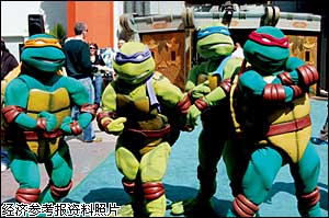 大約20年前,以紐約這座繁華都市為主要場景的《忍者神龜》動畫片進入中國,一代青少年立即成為“龜粉”,而且趁機了解了一下美國都市文化:原來紐約的少年兒童和四大神龜一樣,都愛吃比薩餅,很多美國孩子的代步工具不是自行車而是滑板。當時,任天堂游戲機在國內(nèi)剛開始普及,以四大神龜為主人公的游戲卡相當難找。北京的很多家長為了滿足孩子的愿望,特地托出差的同事到廣東那邊去買。記得當時的相關(guān)游戲不叫《忍者神龜》,而是《激龜忍者》,里面的小烏龜個個都有“必殺技”,對付守在關(guān)底的惡勢力頭頭最為管用。