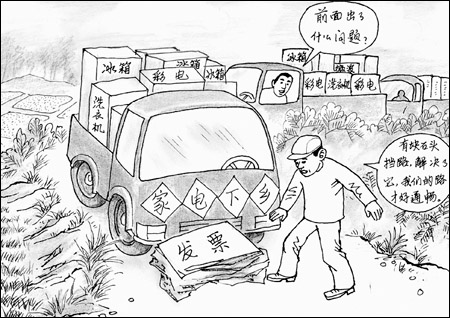 據(jù)《中國(guó)消費(fèi)網(wǎng)》報(bào)道,江西有些地方,愿意銷售下鄉(xiāng)家電的商店寥寥無(wú)幾,原因主要是很多家電商店不愿意開具發(fā)票,因?yàn)橐坏╅_具發(fā)票,銷售商幾乎無(wú)利可圖。目前在有些已開展家電下鄉(xiāng)活動(dòng)的地方,這種現(xiàn)象并不鮮見(jiàn)。 有專家認(rèn)為,國(guó)家稅務(wù)總局應(yīng)印制全國(guó)統(tǒng)一的家電下鄉(xiāng)產(chǎn)品銷售發(fā)票,適當(dāng)減輕家電下鄉(xiāng)產(chǎn)品銷售的賦稅,充分調(diào)動(dòng)銷售網(wǎng)點(diǎn)的銷售和服務(wù)積極性,才能讓更多的農(nóng)村消費(fèi)者享受到家電下鄉(xiāng)惠農(nóng)政策,達(dá)到擴(kuò)大內(nèi)需的目的。