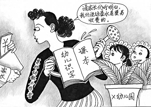 據(jù)媒體報道,有的城市幼兒園不光是高額收取孩子入托收費(fèi)、伙食收費(fèi),還另外要孩子交“識字費(fèi)”,每教會孩子識一個漢字,再多收五角錢。這種巧立名目的收費(fèi)顯然不符合國家政策,F(xiàn)在國家已出臺九年義務(wù)教育,為老百姓減輕了不少負(fù)擔(dān),幼兒園的學(xué)前教育也不應(yīng)例外,希望有關(guān)部門對學(xué)前幼兒教育嚴(yán)格規(guī)范。