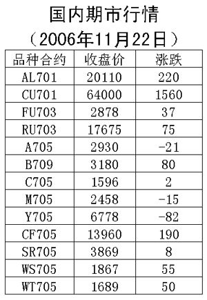 22日,國內(nèi)期貨市場除大豆、豆粕外,其余品種均上漲。