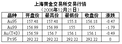 圣誕節(jié)前夕,國(guó)際貴金屬市場(chǎng)交易清淡。受此影響,21日國(guó)內(nèi)黃金白銀價(jià)格下跌,鉑金價(jià)格不變。
