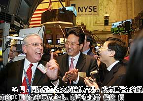 擁有上百年歷史的中國中藥企業(yè)——同濟(jì)堂藥業(yè)有限公司的股票16日正式在紐約證券交易所掛牌交易,這是我國首家在紐約股市上市的中藥企業(yè),也是今年以來在紐交所登陸的首家中國企業(yè)。 同濟(jì)堂這次共發(fā)行美國存托股份986.5萬股(每股存托股份等于4股普通股),募集資金近1億美元,其上市主承銷商是美林證券和瑞士銀行。 同濟(jì)堂藥業(yè)有限公司的前身是在國內(nèi)中藥行業(yè)聞名遐邇的老字號貴陽同濟(jì)堂,該企業(yè)創(chuàng)辦于1888年,距今已有逾百年的歷史。現(xiàn)今的同濟(jì)堂已發(fā)展為集科研、生產(chǎn)、銷售、種植為一體的現(xiàn)代制藥企業(yè),生產(chǎn)中、西藥品種近50種,擁有發(fā)明專利、自主知識產(chǎn)權(quán)的產(chǎn)品8種。 同濟(jì)堂藥業(yè)董事長兼首席執(zhí)行官王曉春說,同濟(jì)堂成功在美上市是中國傳統(tǒng)中醫(yī)中藥與現(xiàn)代資本市場的完美結(jié)合,它有利于提高企業(yè)知名度,把中醫(yī)中藥帶給美國以至全球的投資和消費(fèi)者。 紐交所總裁兼聯(lián)合首席運(yùn)營官凱瑟琳·金尼在接受本報(bào)記者采訪時(shí)說,中國中藥企業(yè)在紐交所上市具有重要意義。目前已有不少優(yōu)秀的中國企業(yè)在紐交所上市,受到了投資者的歡迎,她期望更多的中國企業(yè)來美融資上市。 目前,在紐交所上市的中國企業(yè)已達(dá)21家,中國已成為亞洲在紐交所上市企業(yè)數(shù)量最多的國家。