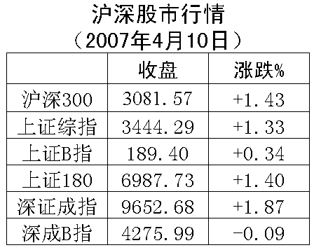 在上市公司業(yè)績(jī)和市場(chǎng)充裕資金的支持下,滬深股指10日再度雙雙創(chuàng)出新高。上證綜指站上3400點(diǎn)整數(shù)關(guān)口,與此同時(shí)兩市創(chuàng)出超過(guò)2300億元的新“天量”。