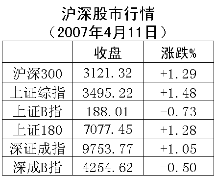 上證綜指11日以3454.42點(diǎn)跳空10點(diǎn)高開(kāi),隨即震蕩上行。午后股指曾一度回落至3428.78點(diǎn)的低點(diǎn),隨即又迅速拉升。上摸距3500點(diǎn)整數(shù)關(guān)口僅“一步之遙”的3497.52點(diǎn)后,上證綜指以3495.22點(diǎn)報(bào)收,較前一交易日上漲1.48%,全天震幅為2%。