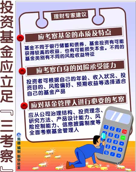 建設(shè)銀行從4月24日起發(fā)行華商基金公司的華商領(lǐng)先企業(yè)基金,并同時開展博時第三產(chǎn)業(yè)成長基金的集中申購工作。建設(shè)銀行江蘇省分行的理財專家建議,市民在挑選適合自己的基金產(chǎn)品前應(yīng)對基金的本質(zhì)及特點、自身的風(fēng)險承受能力以及基金管理人進(jìn)行考察。 要做明白的基金投資者,首先應(yīng)考察基金的本質(zhì)及特點。建設(shè)銀行江蘇省分行的理財專家表示,基金是一種利益共享、風(fēng)險共擔(dān)的集合投資方式。投資者根據(jù)所持基金份額享受基金的收益,但同時也要承擔(dān)相應(yīng)的投資風(fēng)險;鸩煌阢y行儲蓄和債券,基金投資有可能獲得較高的收益,也有可能損失本金。不同的基金類別有不同的風(fēng)險收益特征。一般來講,預(yù)期收益越高,承擔(dān)的風(fēng)險也越大。 其次,投資者應(yīng)考察自身的風(fēng)險承受能力,并根據(jù)自身特點選擇適合自己的基金產(chǎn)品。投資者可根據(jù)自己的年齡、收入狀況、投資目的、風(fēng)險偏好、預(yù)期收益等選擇適合自己的基金產(chǎn)品,并將自己的金融資產(chǎn)在儲蓄、保險、基金等投資工具中根據(jù)自身的風(fēng)險承受能力和理財目標(biāo)做合理配置,理性地進(jìn)行投資決策。 最后,投資者還應(yīng)對基金管理人進(jìn)行必要的考察;鸸芾砣说穆氊(zé)是負(fù)責(zé)運作基金資產(chǎn),為投資者爭取最大的投資收益。因此,基金管理人的管理能力是取得基金業(yè)績的基礎(chǔ)。投資者應(yīng)當(dāng)從公司治理結(jié)構(gòu)、投資理念、研究方法、產(chǎn)品設(shè)計能力、風(fēng)險控制能力、信息披露制度等方面全面考察基金管理人。 此外,專家還提醒,市民在投資前,應(yīng)認(rèn)真閱讀風(fēng)險提示函和基金公司的《基金合同》、《招募說明書》等基金法律文件。股票型基金、股債混合型基金,其資產(chǎn)的30%到95%投資于股票,因此,證券市場的價格波動會引起基金份額凈值波動,投資者要正確認(rèn)識和對待證券投資基金可能出現(xiàn)的投資風(fēng)險,并具備相應(yīng)的風(fēng)險承受能力。