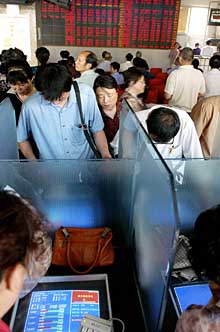 股民在證券營(yíng)業(yè)部?jī)?nèi)交易。 本報(bào)記者 陳曄華 攝 |