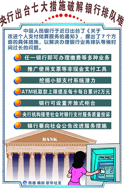 央行出臺(tái)七大措施破解銀行排隊(duì)難[圖表]