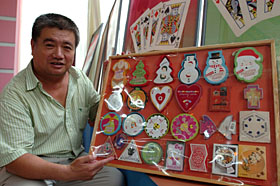 | 趙玉學(xué)在展示他收藏的異形撲克牌。本報記者 燕雁 攝 | 本報訊