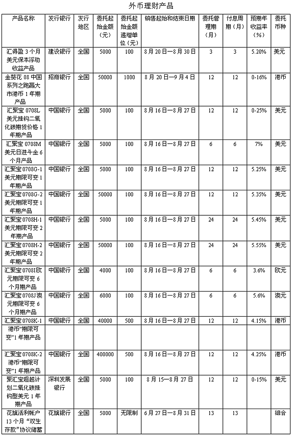 正在發(fā)售的部分銀行理財(cái)產(chǎn)品