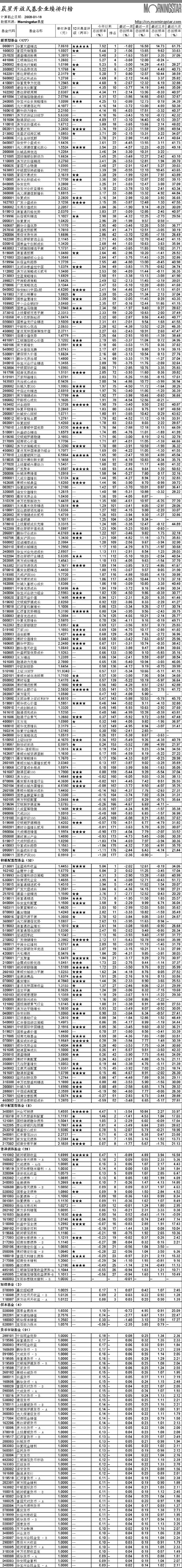 晨星開(kāi)放式基金業(yè)績(jī)排行榜【2008-01-11】