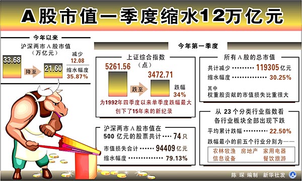 A股市值第一季度縮水12萬(wàn)億元