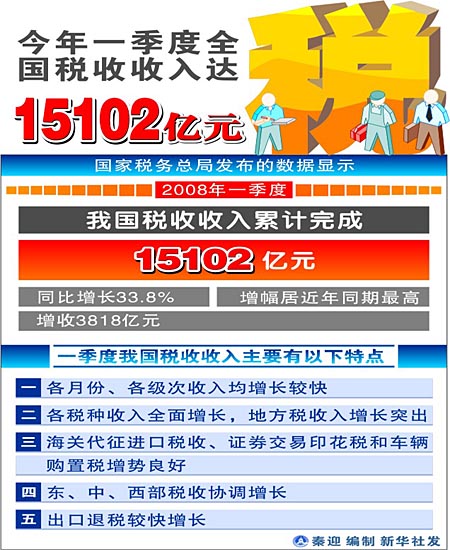 今年一季度全國稅收收入達15102億元[圖表]
