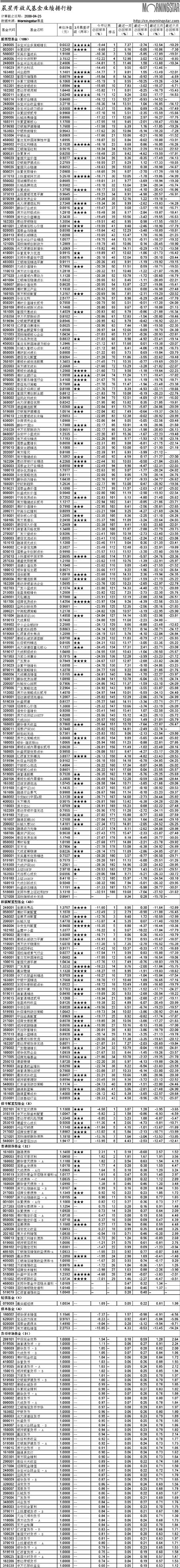 晨星開放式基金業(yè)績排行榜[2008-04-25]