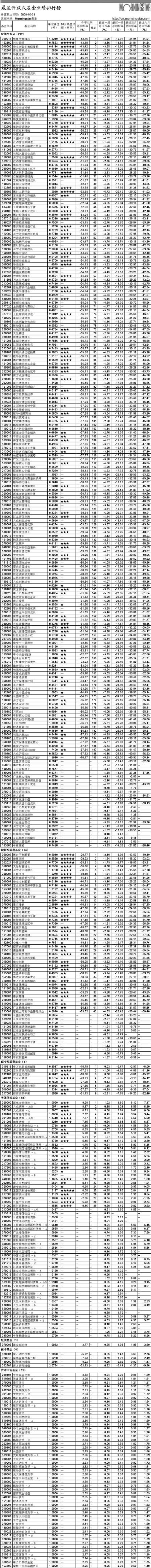 晨星開放式基金業(yè)績排行榜[2008-10-20]