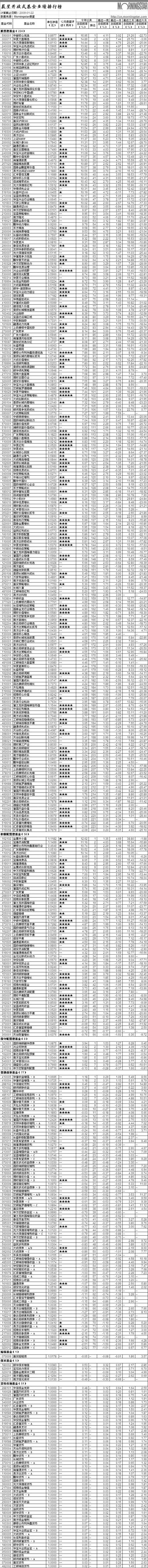 晨星開放式基金業(yè)績排行榜[2009-01-19]