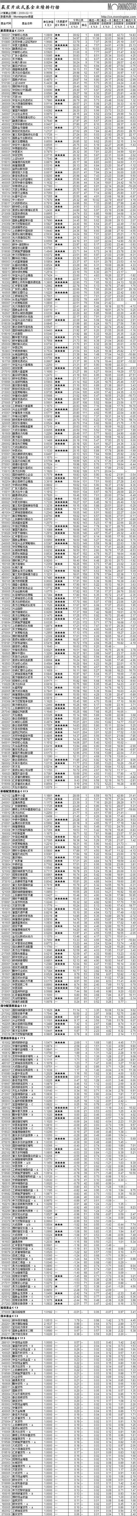 晨星開放式基金業(yè)績排行榜[2009-02-13]