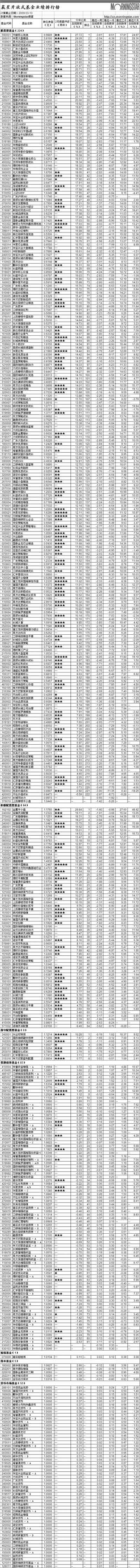晨星開放式基金業(yè)績排行榜[2009-03-16]