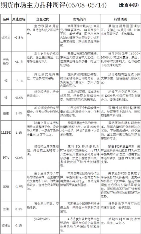 期貨市場(chǎng)主力品種周評(píng)(5月8日-14日)