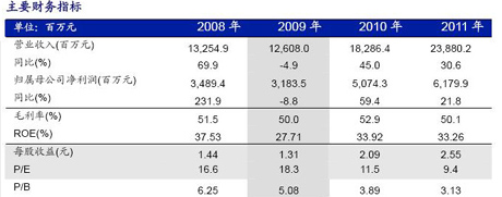三是煤炭產(chǎn)量在2010-2011年將快速增長(zhǎng),產(chǎn)量增長(zhǎng)為公司業(yè)績(jī)?cè)鲩L(zhǎng)提供有力保障。根據(jù)對(duì)公司未來三年業(yè)績(jī)預(yù)測(cè),預(yù)計(jì)2009年公司每股收益1.31元,2010年每股收益2.09元,2011年每股收益2.55元。
