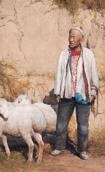 徐芒耀:《老農(nóng)與羊》 |