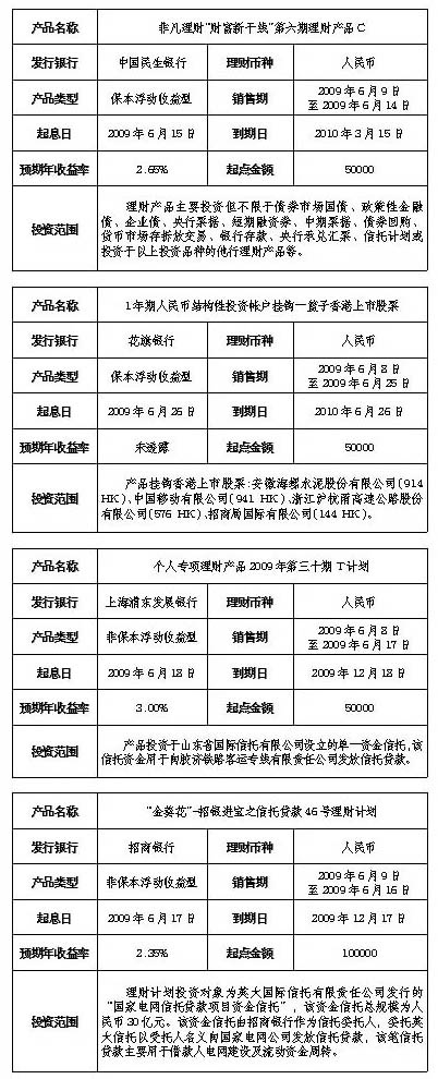 在售人民幣理財產品