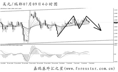 ▲美元兌瑞郎仍未能突破震蕩區(qū)間,后市匯價(jià)再創(chuàng)新低的希望很大。關(guān)注下方1.0650到1.0590一線的支撐作用,雖然短線的動(dòng)能仍在交替,但仍將以下行為主基調(diào)。
