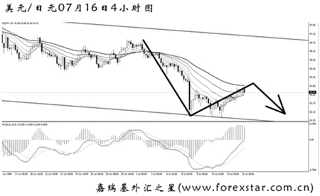 ▲美元兌日元獨(dú)自走弱,但這輪下跌剛好到達(dá)下跌通道下沿的位置,目前在進(jìn)行回調(diào)。預(yù)計(jì)匯價(jià)仍有希望繼續(xù)沿通道下跌,只有有效升破94.40的大陰線最高點(diǎn)才能結(jié)束本輪跌勢(shì),操作仍需以上方做空為主思路。